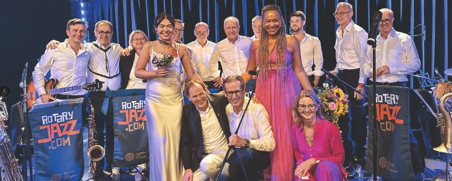 Stargast war die international anerkannte Sängerin Stella Jones. Sie verstand es, kongenial mit den Musikern zu harmonieren, und riss das Publikum zu Begeisterungsstürmen hin. Als Überraschung betrat die Jazzsängerin Stephanie Semeniuc die Bühne, um gemeinsam mit Stella Jones zu singen. Die 26-Jährige erfüllt sich derzeit mit dem Studium Jazzgesang an der Musik und Kunst Privatuniversität der Stadt Wien (MUK) einen Lebenstraum. Stephanie gehört der ungarischen Minderheit in Rumänien an und studierte in ihrer Heimat Musikpädagogik. Danach wollte sie nach Österreich, um an der MUK die Aufnahmeprüfung abzulegen. Damit ihr Plan aufgehen kann, musste zunächst Geld her, zwei Jahre lang kellnerte sie dafür in Salzburg – und bewarb sich. 50 Bewerber waren angetreten, zwei wurden ausgewählt – und sie war dabei! Was Rotary damit zu tun hat? Der RC Salzburg-Altstadt hat vor sechs Jahren nach einer Idee von Mitglied Ferdinand Hochhauser die Initiative Rotary Young Talents ins Leben gerufen. Der Club nimmt damit außerordentlich Begabte – egal aus welchem Beruf – unter seine Obhut. 2023 war es neben anderen Stephanie Semeniuc. Mittlerweile hat sie eine eigene Jazzband gegründet und ist international unterwegs.