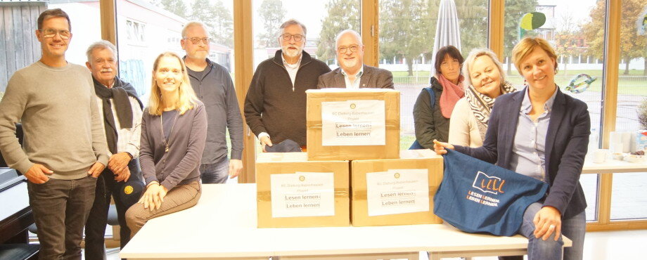 Für die zehnte Ausgabe wurden Mittel für 60 Klassensätze bereitgestellt. Ob Schimmel und Oderich, Faustdicke Freunde oder Gefahr im Sausewald: Für manche Kinder war es das erste eigene Buch. Mit Hilfe der Klassenlehrer und -lehrerinnen wird der Lesestoff bearbeitet. Dabei steht das inhaltliche Erfassen des Textes im Vordergrund. Manchmal entstehen aus der Beschäftigung mit den Geschichten auch Theateraufführungen, Bilderausstellungen und vieles mehr. Man darf gespannt sein, was nun an den Grundschulen in Dieburg, Babenhausen, Otzberg, Groß-Umstadt und Rheinheim entsteht, nachdem Projektleiter Peter Richter, Präsident Klaus Graff und Past-Präsident Jörg von Mörner die Jubiläumsspende an der Dieburger Gutenbergschule überreicht haben.