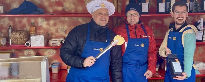 Den Abschluss bildete der e-Club Schwaben-Dreiländereck. Mit frisch zubereiteten Kartoffelpuffern sorgten die Mitglieder für kulinarische Begeisterung. Die gesammelten Spenden sind für ein Global-Grant-Projekt vorgesehen, das in der kenianischen Hauptstadt Nairobi Jugendlichen Unterstützung bei Betreuung und Berufsausbildung bietet. Organisiert wird dieses Projekt vom RC Kaufbeuren.