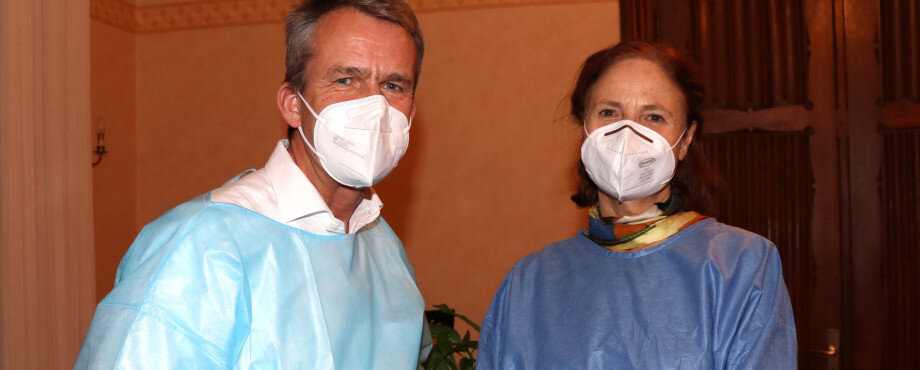 Zwei Rotarier aus dem Club Stemwede-Dümmer sind beim bundesweiten Corona-Impfstart dabei gewesen. Die Ärzte Dr. Rainer Hafer und Dr. Brigitte Sommer-Hafer kamen am Sonntag, 27. Dezember 2020, mit ihrem Praxisteam in das Alten- und Pflegeheim Schloss Rahden und spritzten dort im Auftrag von Kassenärztlicher Vereinigung und Kreisgesundheitsamt die ersten 189 Dosen des Biontech-Impfstoffes im Kreis Minden-Lübbecke.