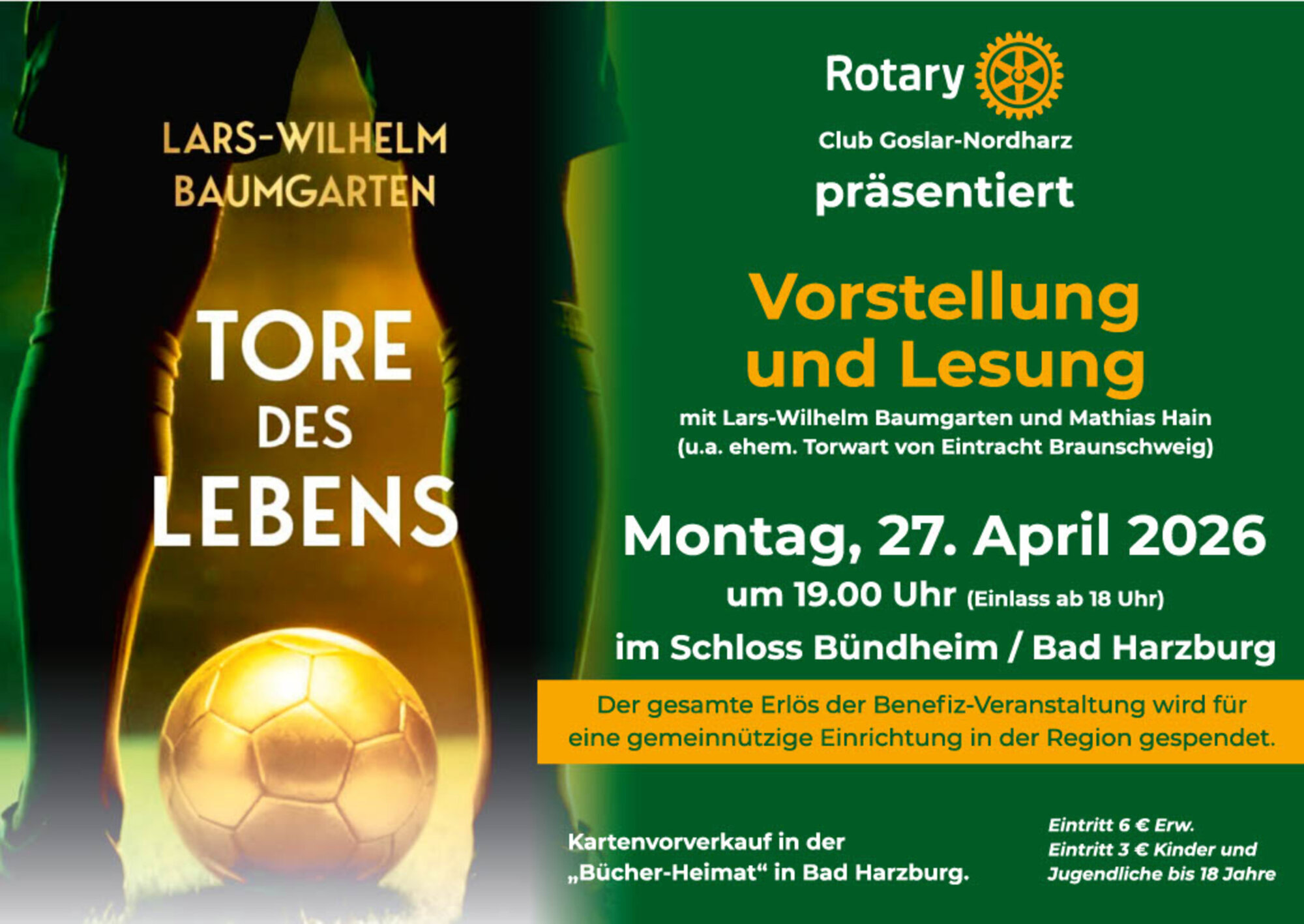 Die Lesung beginnt um 19.00 Uhr, Einlass ist ab 18.00 Uhr. Karten sind im Vorverkauf (6 Euro Erwachsene, 3 Euro Schüler und Studenten) bei „Bücher-Heimat“ in Bad Harzburg erhältlich.