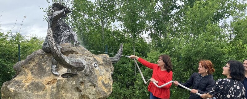 Kunst im Dienst der guten Sache: Dieter Erhard (RC Erlangen-Schloss) hat seine Skulptur "El Toro" enthüllt - und 6.700 Euro Spenden für das Frauenhaus Erlangen gesammelt.