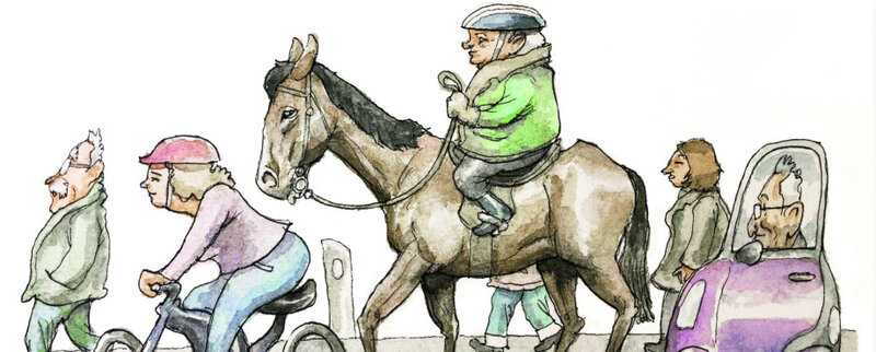 Freund Warrenstein hatte schweren Herzens Abschied von seinem Porsche 911 genommen. Früher hatte er den Boliden gerne als sehr praktisch gerühmt: „In den Neunhundertelfer passen eine schöne Frau und zwei Kreditkarten. Reicht völlig.“ Nun mussten die schönen Frauen und die Kreditkarten in einem elektrischen Fiat 500 unterkommen. Graf Wolkenklau-Oderbruch, der früher mit dem Hummer-Jeep (30 Liter auf 100 Kilometer) herandonnerte, erschien nun per Pferd aus dem gräflichen Gestüt.