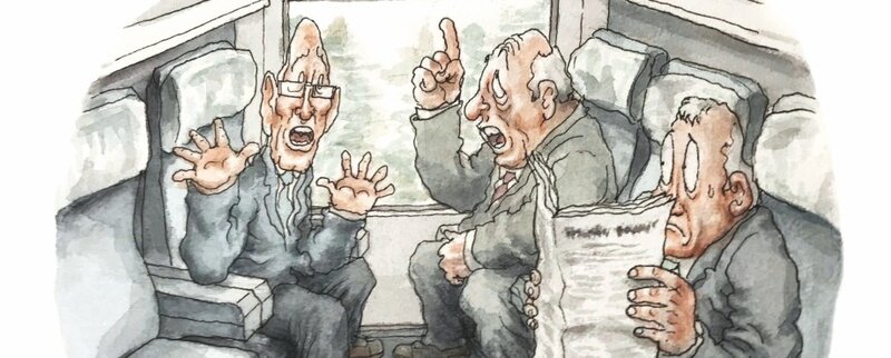 Als Präsident Pröpke das Abteil des ICE betrat, der ihn von Bröckedde nach Düsseldorf bringen sollte, fand er einen freien Fensterplatz. Seine Freude wuchs noch, als er den Herrn gegenüber erblickte, der wie er die Rotary-Nadel trug. Komplettiert wurde die Gruppe durch einen Reisenden ohne Nadel, der sich auf einem Platz am Gang hinter seiner Zeitung versteckte.