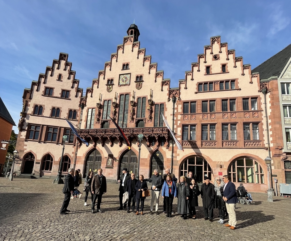 Am Sonntagmorgen kam die Gesellschaft am Dom zusammen — zu einem Gang durch das Stadtzentrum, rund um die "Neue Altstadt", Römer und Paulskirche. Rainer Klump zeichnete sich dabei zusätzlich aus als perfekter Stadtführer – und das in zwei Sprachen.