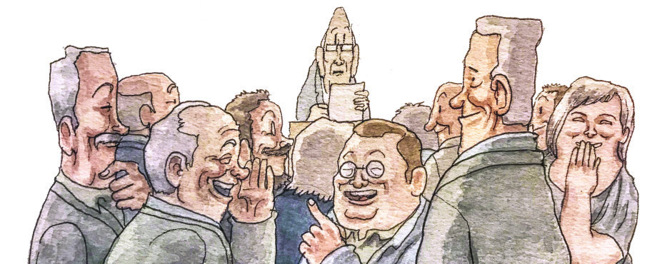 Beim Folgemeeting war die Präsenz deutlich höher, alle warteten auf die Regularien. Pröpke berichtete: „Wir gratulieren Freund Wümmermoos zur vierten Eheschließung. Seine Verweildauer in den vorigen Ehen betrug übrigens im Durchschnitt 7,6 Jahre.“