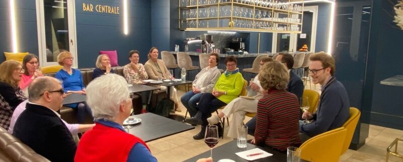 Ende 2022 sprachen Rosmarie Gudenus vom RC München-Bavaria und Katrin Boehme vom RC München-Lehel erstmals mit Margarete Rathe, Geschäftsführerin der Bayerischen Hörbücherei. Sehr schnell entstand die Idee einer Kooperation, um lesefreudige Menschen mit und ohne Sehbehinderung in einem gemeinsamen Lesekreis zusammenzuführen. "Die Buchsinnigen", so nennen sie sich, bestehen mittlerweile aus 20 Teilnehmern mit völlig unterschiedlichen Erfahrungen und Lebenssituationen. Ausgewählt werden Bücher aus dem umfangreichen Angebot der Bayerischen Hörbücherei. Alle sechs bis acht Wochen treffen sich die Buchsinnigen, zur Hälfte bestehend aus Interessenten mit Sehbehinderung und zum anderen mit Teilnehmern ohne Sehbehinderung aus dem rotarischen Kreis, um über die ausgewählte Literatur zu diskutieren und sich auszutauschen. Manchmal ist sogar ein Blindenhund dabei.
