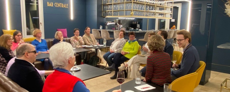 Seit Anfang 2024 haben "Die Buchsinnigen" einen festen Treffpunkt bei der H&Z-Unternehmensberatung in München. Stefan Aichbauer, Vorstandsmitglied der H&Z und Mitglied des RC München Bavaria, stellt den Lesenden in der "Bar Centrale", dem zentralen Treffpunkt des Büros, den geeigneten Raum zur Verfügung. Dieser Platz ist wichtiger Bestandteil für den wertvollen Austausch geworden und ermöglicht es den Teilnehmern, in ungezwungener Atmosphäre zusammenzukommen. Die gute Erreichbarkeit ist ein essenzieller Beitrag zum Gelingen des Projektes. Zum gemütlichen Ausklang nach spannenden Diskussionen tragen dann auch die kleinen kulinarischen Mitbringsel der Teilnehmer bei. Das Interesse und der Mut aller Beteiligten bringt das Projekt voran und kann als nachahmenswertes Beispiel dienen: Im deutschsprachigen Raum gibt es etwa zehn Blinden-Hörbüchereien mit über 250.000 Tonträgern, also Möglichkeiten genug, um weitere inklusive Lesekreise zu gründen.