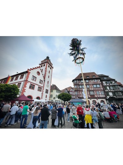 Mosbach ist eine lebendige Kleinstadt mit einer Vielzahl von kulturellen Veranstaltungen im Jahresverlauf wie Handwerkermärkte, ein Frühlingsfest oder den Mosbacher Sommer. Eine in vielen Gemeinden lebendig gehaltene Tradition fehlte allerdings: das Aufstellen eines Maibaums. Diesen Mangel haben die Rotarier vom RC Neckar-Odenwald-Kreis in einer Gemeinschaftsaktion beseitigt. Zentral am Marktplatz stellten sie im Frühjahr einen 21 Meter hohen, geschmückten Maibaum auf und organisierten ein zünftiges Maibaumfest. "Mit dieser Aktion haben wir lokale Geschichte geschrieben", freut sich Past-Präsident Jens Kleine noch heute über die seit Jahrzehnten erste Maibaumaufstellung.