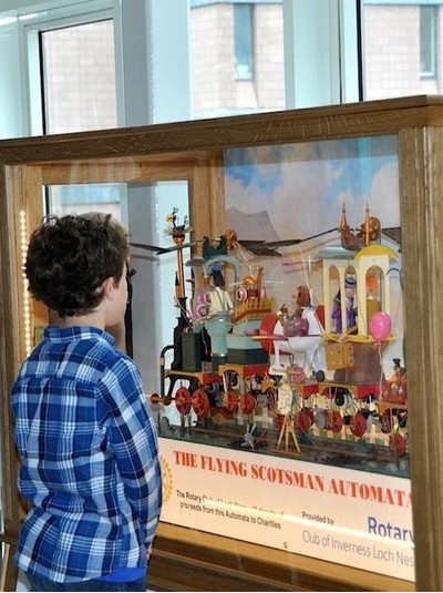 Münze für Münze sammelt eine legendäre schottische Lokomotive Tausende Pfund für wohltätige Zwecke. Ken Wilson, Past-Präsident des Rotary Clubs Inverness Loch Ness, war federführend bei der Installation der „Flying Scotsman Automata“ in einem lokalen Einkaufszentrum im Jahr 2016. Der Einwurf von einer Münze im Wert von etwa einem Dollar aktiviert den komplexen Mechanismus, der eine Lokomotive mit einem Zugführer im Schottenrock und Waggons auf- und abwippen lässt. In den Waggons befinden sich ein strickendes und Tee trinkendes Ehepaar, ein Pilot in einem Flugzeug und natürlich Nessie, deren Schwanz sich zur Musik dreht. Der Club wartet den Apparat und kann sich von den bisher gesammelten 27.000 Dollar jeden Monat mehr als 350 Dollar an Fördergeldern auszahlen. So konnte der RC Loch Ness bisher 60 örtliche Hilfsorganisationen unterstützen. Das findet die frühere Leiterin des Einkaufszentrums Jackie Cuddy „einfach toll“, genauso wie die vielen unterstützenden Organisationen und selbstverständlich die Rotarier.