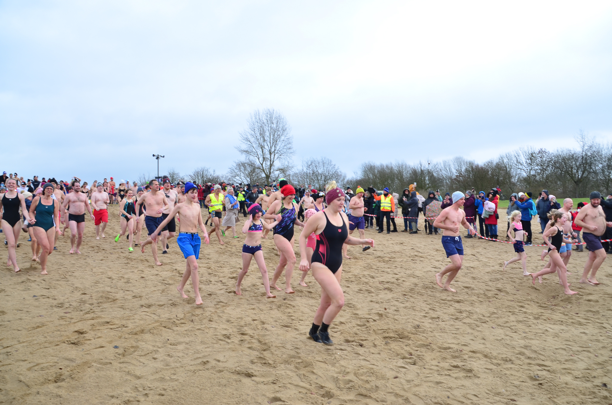 Rund 250 Schwimmer - Frauen und Männer, Junge und Alte, Kinder und Jugendliche, von Neopren gewärmt oder nur mit Badehose oder Bikini bekleidet - liefen am Neujahrsmittag wagemutig den Strand hinab zum Wasser des Weseler Auesees und stürzten sich in das 3,4 Grad kalte Nass. So war es gewollt, so ist es gekommen.