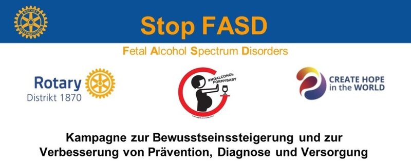 Im vergangenen Jahr hatte der Distrikt eine Kampagne zur Bekämpfung von FAS gestartet, denn das Fetale Alkoholsyndrom ist in Deutschland die häufigste Form geistiger Behinderung unter Neugeborenen. Bereits im Dezember 2022 hatte das Rotary Magazin über die massiven Auswirkungen für die Betroffenen und ihre Familien berichtet und die Kampagne vorgestellt. Ihre Ziele sind einerseits, mehr Bewusstsein für die möglicherweise fatalen Folgen auch durch den Genuss von geringen Mengen Alkohol zu schaffen als auch für eine Verbesserung bei Diagnose und Versorgung der Betroffenen zu sorgen. Tatsächlich ist FAS auch vielen Vertretern der Ärzteschaft, in Pflegeberufen, sozialen Betreuungsdienste und in der öffentlichen Verwaltung mangels Vermittlung in Studium, Aus- und Weiterbildung häufig unbekannt.