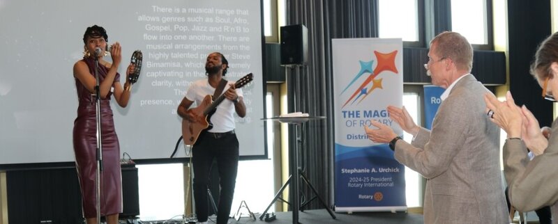 Von Vielfalt wusste noch ein weiterer Gast aus Afrika zu berichten: Paul Mushaha, der 2016 aus der Demokratischen Republik Kongo floh. Seither lebt er in der ugandischen Flüchtlingssiedlung Nakivale und hat dort einen Rotary Club gegründet: ein Ort, an dem 14 Sprachen gesprochen werden, in dem es Fußballturniere zur Förderung des Friedens gibt und durch Polio behinderte Kinder Rollstühle erhalten. Eine Erinnerung auch daran, dass im Distrikt das Engagement gegen Polio eine der Prioritäten bleibt.