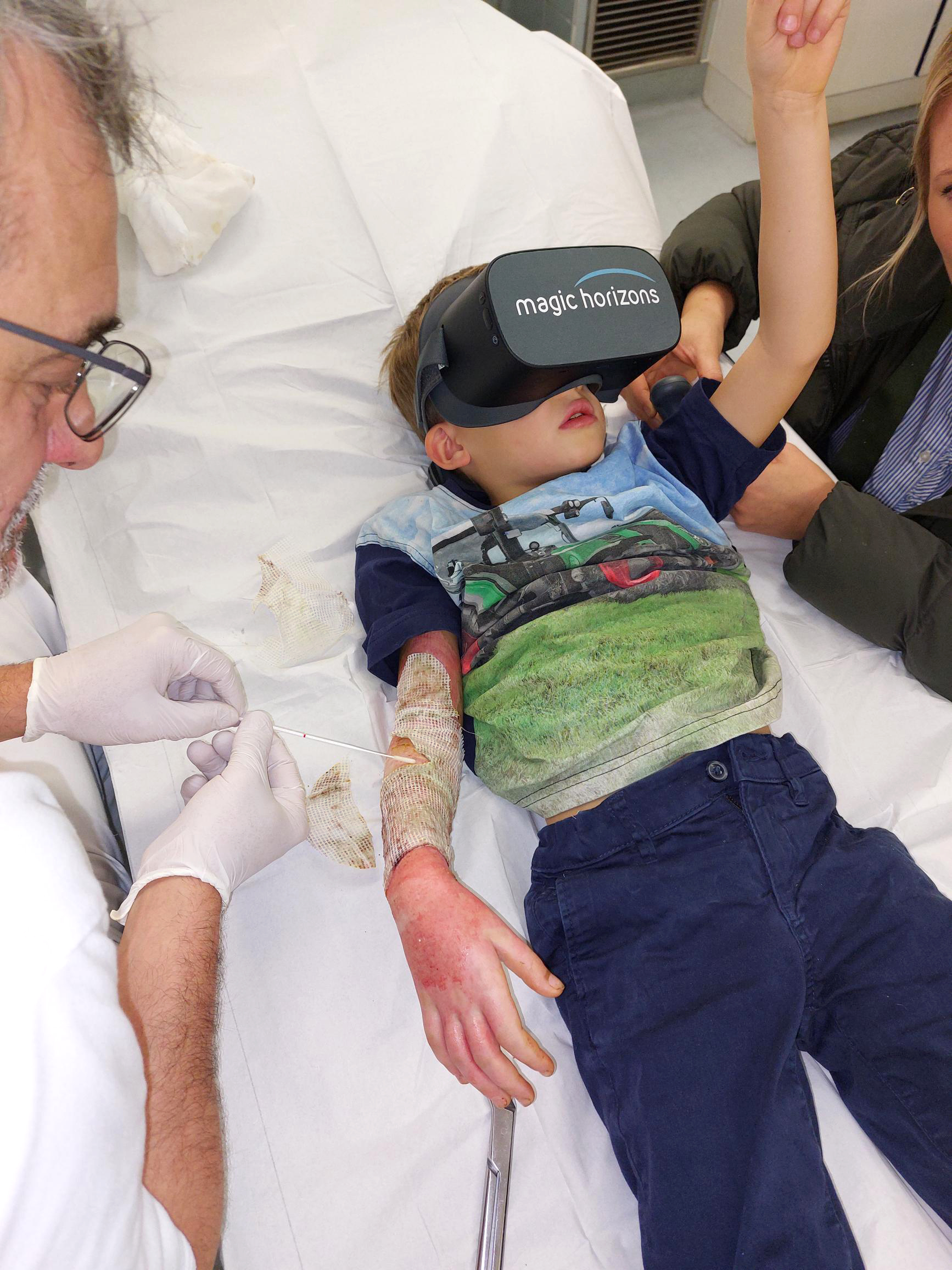 Delfine springen aus dem Wasser, in türkisblauem Meer ziehen Fischschwärme ihre Bahnen, und hoppla – der Oktopus bekommt eine andere Farbe. Das Zentrum für schwerbrandverletzte Kinder der München Klinik setzt Virtual-Reality-Brillen (VR) ein, mit deren Hilfe die Kinder mitten in die Welt der Natur teleportiert werden. „Durch die VR-Brillen wird uns die Behandlung der Verbrennungen bei den Kindern enorm erleichtert“, sagt Dr. Carsten Krohn, Leitender Oberarzt in der Schwabinger Kinderchirurgie und Leiter des Zentrums für schwerbrandverletzte Kinder. „Sie sind durch die visuelle Ablenkung entspannter und kooperativer und geben weniger Schmerzen an. Das ist eine große Hilfe, sowohl für die Kinder als auch für uns als Behandler, und es ist auch für die Eltern stressfreier.“
