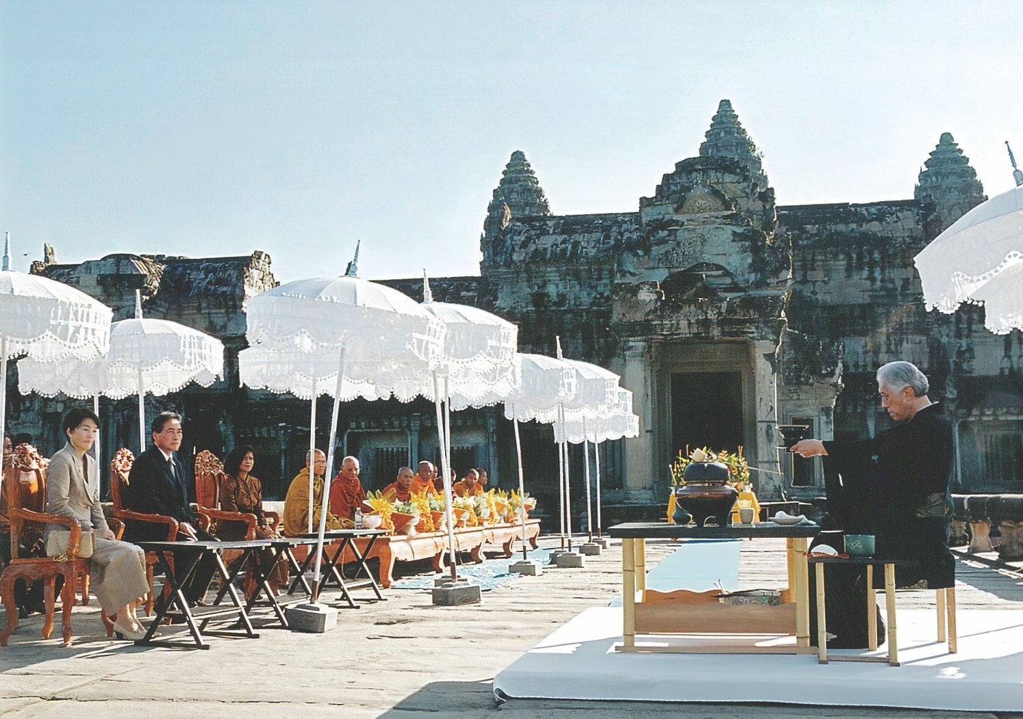Sobald jede Schale zubereitet war, trug er sie zum inneren Schrein der Gedenkstätte, wo die Namen der amerikanischen Matrosen, die während des Angriffs ums Leben kamen, in eine hoch aufragende Gedenkwand eingemeißelt sind. Dort hob er seinen Kopf zum Himmel und hob die Schale mit ausgestreckten Armen als Opfergabe für diese verlorenen Seelen. Nach einiger Zeit senkte er die Schale auf einen hölzernen Opfertisch. Dann faltete Sen seine Hände zum Gebet und sprach eine letzte stille Bitte aus. Er rief den Geist des Friedens und der Versöhnung in den Saal und in die Herzen der Versammelten. Alle Augen waren auf ihn gerichtet, und in der Stille war die Symbolik ohrenbetäubend.