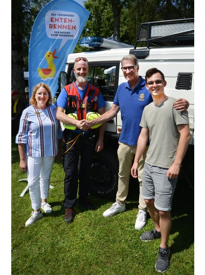 Rotary organisierte mit 60 Mitgliedern das Entenrennen ehrenamtlich in diesem Jahr zum achten Mal. Der Verkauf der Lizenzen, das Einwerben der Preise, ein eigenes IT-System – erstellt für die Abwicklung des Rennens und der Preisvergaben – und die Organisation des Renntages sind mittlerweile "fester Bestandteil des Sommerprogramms am Tegernsee". Auch die Damen des Inner Wheel Club Tegernsee sowie die Mitglieder von Rotaract Oberland wirkten in diesem Jahr erneut mit. "Ohne die tatkräftige Unterstützung von Inner Wheel und Rotaract wäre die