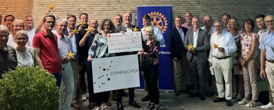 Eine Spende über 65 000 Euro für das zukünftige Kinder- und Jugendhospiz "Sternenlichter" Göttingen hat der Präsident des Rotary Clubs Einbeck-Northeim, Andreas Oppermann, überreicht. Er dankte dabei neben den Clubmitgliedern auch dem Rotary Club Bad Lauterberg-Südharz, der als zweiter Rotary Club mit einer Spende in Höhe von 5000 Euro die Beantragung von Fördermitteln in Höhe von 19.000 Euro aus dem Distrikt 1800 ermöglichte.