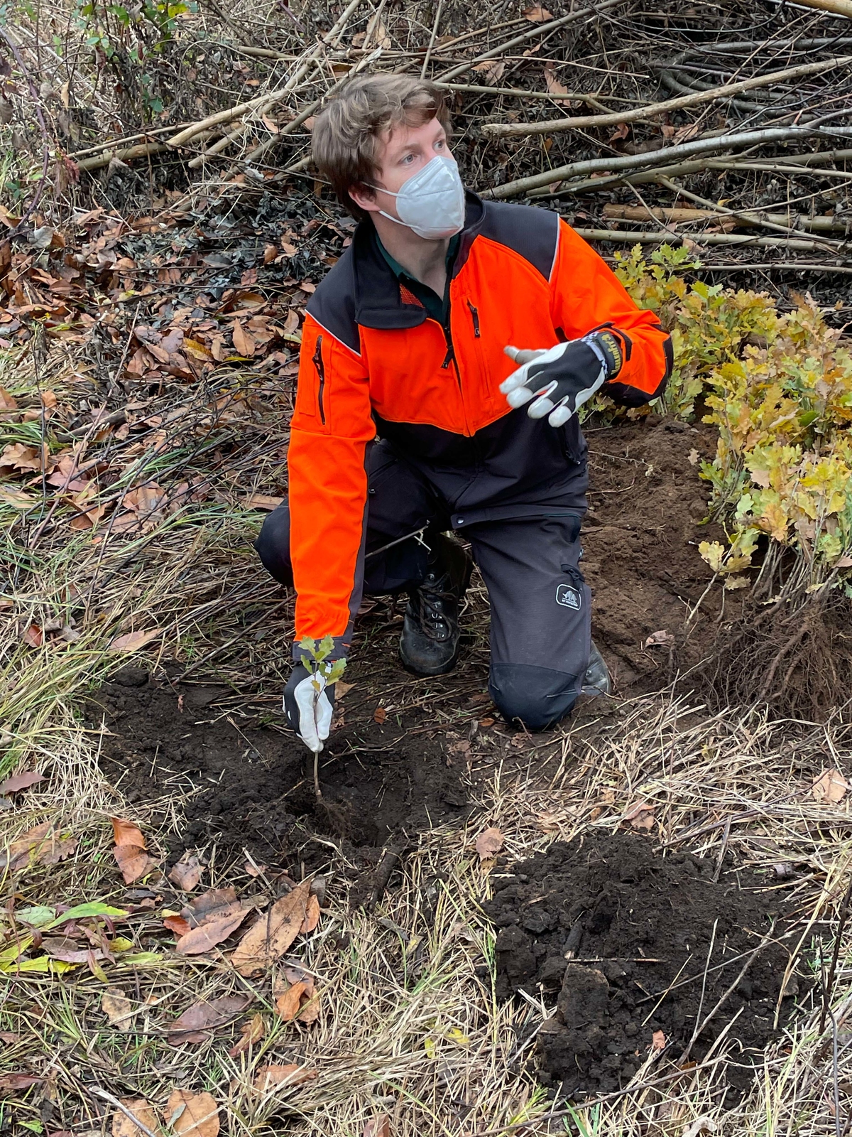 Nach dem allgemeinen "Hallo" folgte eine ausführliche Einweisung der ehrenamtlichen Waldarbeiter durch Florian Szczodrowski, Leiter des Jugendwaldheims in Hasselroth. Der bei HessenForst angestellte Waldpädagoge gab zunächst einen Überblick über Standort und Aufgabenstellung: So sind an diesem Tag 1.000 Setzlinge von Stieleichen in den sandigen Boden zu pflanzen. Sodann erklärte und zeigte er seinen aufmerksamen Schülern höchst anschaulich, worauf es beim Bäume pflanzen ankommt – und auch, wie man nach dem Pflanzen durch einen "Zupftest" eine Qualitätskontrolle durchführen kann.