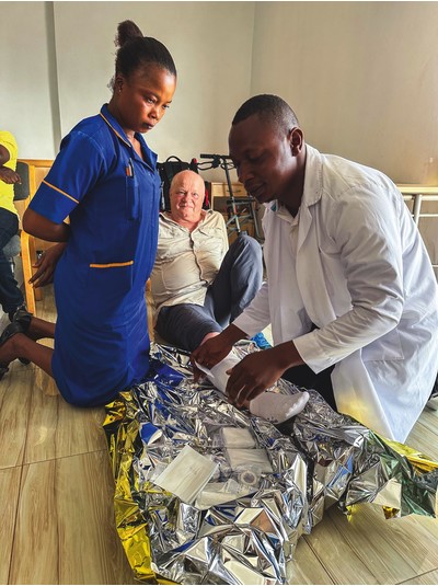 Gerade haben Lars Maiwald, ärztlicher Direktor des Torgauer Krankenhauses, Dirk Brinschwitz, Geschäftsführer der Fernwasserversorgung Elbaue-Ostharz, und Oliver Below, Gesundheitspädagoge und Geschäftsführer des notfallmedizinischen Sim- Zentrums, mithilfe eines District Grants vor Ort die Erste-HilfeAusbildung auf den Weg gebracht – dabei geht es unter anderem um Frakturen und erste Maßnahmen nach einem Verkehrsunfall. Junge Menschen werden als Ersthelfer ausgebildet, als Multiplikatoren sollen sie ihr Wissen an Lehrer und Schüler weitergeben. Lars Maiwald nennt den Lernwillen und die Disziplin der Beteiligten „auffallend hoch“, das Wissen um einfache hygienische und gesundheitliche Zusammenhänge erschreckend gering. Fotos belegen den desolaten Zustand von Kliniken und Impf- bzw. Ent bin dungs statio nen: „In der Luft hängt Fäkaliengeruch, im Haus sind Vögel und Ratten.“