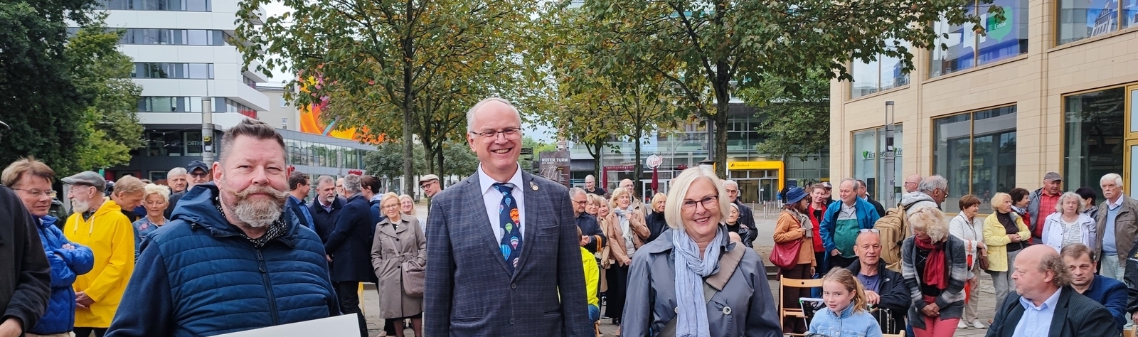 Über 30 dieser Rotgussplatten liegen bereits auf dem Gehweg zu Füßen des Roten Turms, mit Namen, Geburts- und Sterbejahr weisen sie auf die Geehrten hin und jedes Jahr kommen neue Personen und Platten hinzu, so Christian Köhler, Präsident der RC Chemnitz.