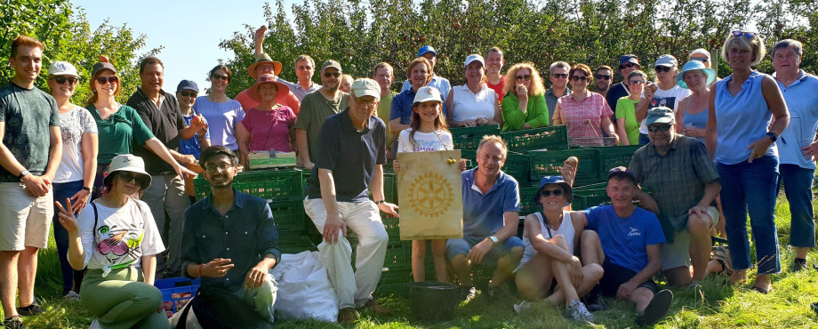 2000 Kilo Äpfel pflückten und verpackten die Mitglieder der Rotary Clubs Magdeburg und Magdeburg Otto von Guericke sowie der Rotaract Club Magdeburg für die örtliche Tafel. Die Äpfel von der naturnahen Apfelplantage der Nabu-Stiftung bei Rogätz kommen ohne Dünger und Pestizide aus – eine Oase für Insekten mit hohem Ertrag. Antonia Weitz von der Magdeburger Tafel bedankte sich bei der Übergabe herzlich: „Durch den enormen Kundenanstieg nach der Ankunft der Menschen aus der Ukraine sind uns solche Spenden besonders willkommen.“