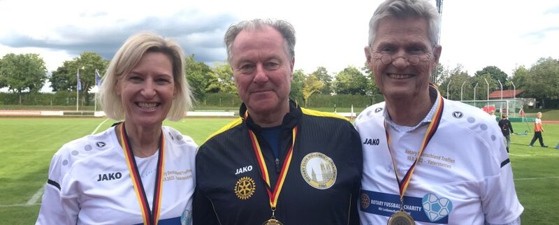 Den Auftakt machte am Samstag die Rotary Fußball Charity in Vaterstetten (bei München). Bei der persönlichen Begrüßung am Morgen sprach Frank Meik, Organisator und Vorsitzender des Deutschen Governorrats (DGR) von 2021/22, im strömenden Regen von "Fritz-Walter-Wetter", prophezeite aber Sonnenschein vom Start um 13 Uhr bis zum Ende des Turniers um 18 Uhr. Und so kam es auch. Pünktlich zum Einmarsch der Fußballer und Rotarier riss der Himmel auf und es blieb sonnig und bei 22 Grad angenehm warm.
