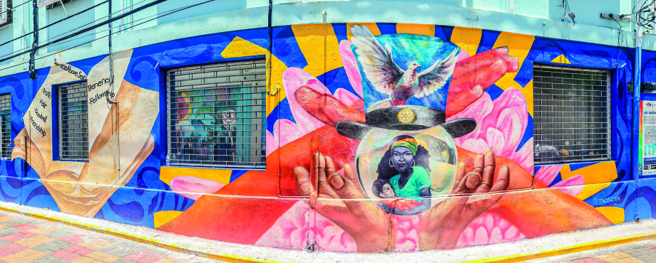 Sie gaben ein interaktives Wandbild in der Hauptstadt in Auftrag. Wer das Bild mit einer App scannt, erhält weitere Informationen unter anderem zu den Schwerpunktbereichen von Rotary, den Schritten zur Mitgliedschaft und zum Spenden an die Rotary Foundation. „Dieses Wandbild ist mehr als ein Kunstwerk“, sagt der Past-Präsident des RC Kingston, Steven Hudson. „Jeder Pinselstrich symbolisiert unser Engagement für diese Bereiche.“ Zusammen mit dem Maler Anthony „Taosze“ Smith, der Digitalkünstlerin Kianne Patrice Hutchinson und dem Non-Profit-Kunstzentrum Kingston Creative, das Einheit und wirtschaftliche Entwicklung fördert, realisierten die Clubs das Augmented-Reality-Projekt.