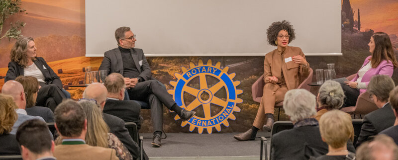 Begrüßt wurden sie von Verena Roth, Präsidentin des RC München-Alpenblick, und Michael Ploss, Präsident des RC München-West, die in diesem Jahr die Veranstaltung ausgerichtet hatten. Andreas Albrecht (RC München-West) führte durch den Abend. Das Formatt „Pack ma’s“ entstand 2020 auf Initiative der Rotary Clubs München-Mitte und München, um den Austausch unter den Münchner Rotarierinnen und Rotariern zu fördern. Es sieht vor, dass jedes Jahr zwei der Münchener Rotary Clubs gemeinsam eine Neujahrsveranstaltung für einen nachhaltigen Gedankenaustausch unter den Clubs organisieren und veranstalten.