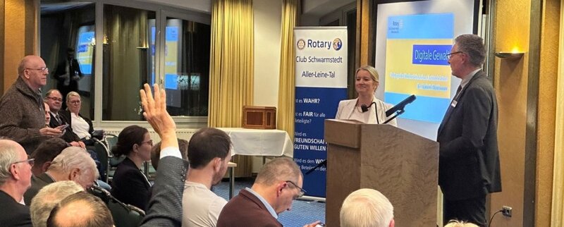 Einen besonderen Gast konnte der Rotary Club Schwarmstedt Aller-Leine-Tal kürzlich begrüßen: Vor mehr als hundert Gästen referierte die niedersächsische Justizministerin Kathrin Wahlmann zum Thema "Digitale Gewalt". Im Clublokal in Essel begrüßte Präsident Christoph Wasserfuhr hierzu neben den Präsidenten und Mitgliedern der benachbarten Rotary Clubs auch Vertreter anderer Service Clubs aus der näheren Umgebung.