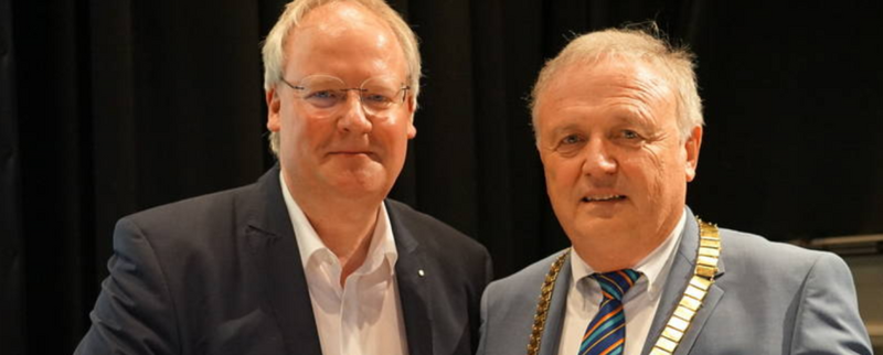 Einem musikalischen Hochgenuss am Piano folgte der Rückblick des Governors auf das rotarische Jahr sowie die Distriktversammlung. Und natürlich: Die Staffelstab-Übergabe an den Governor des rotarischen Jahres 2024/25, Klaus Brodbeck.