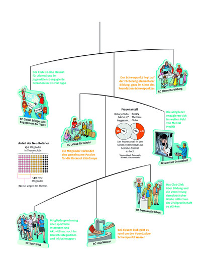 Für die Gründung sogenannter Themenclubs braucht es nur eine vom Thema begeisterte Person, egal ob bereits Rotary-Mitglied oder nicht, denn bei allem weiteren helfen das Membership-Team und ein gut ausgearbeiteter „Fahrplan“. Bis zur Charter dauert es erfahrungsgemäß nicht lange, im Schnitt nur rund sieben Monate. Das Beste daran: Der Anteil der Neumitglieder, die nur durch das besondere Angebot des Themenclubs Mitglied bei Rotary werden wollten, liegt bei 50 Prozent. So wie der Frauenanteil (48,2 Prozent) auch: beinahe dreimal so hoch wie im Durchschnitt „herkömmlicher“ Rotary Clubs in unserer Region (18 Prozent).