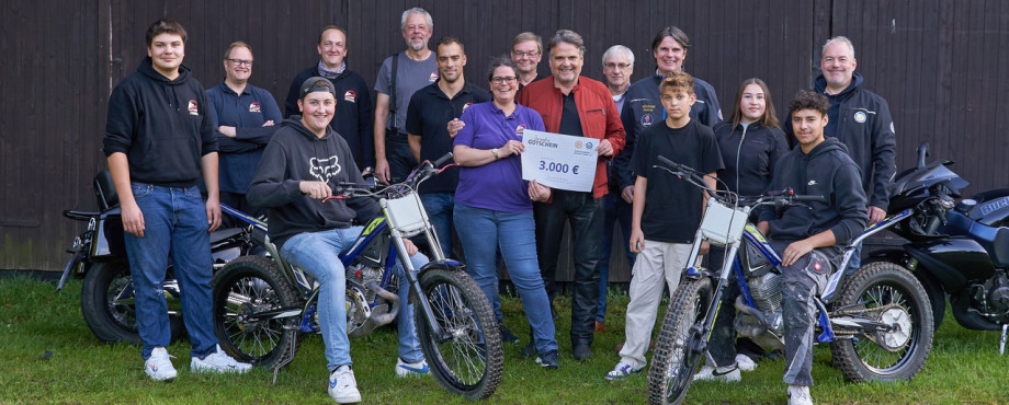 Hier können die Kids mit Trialmaschinen Gleichgewicht und die Beherrschung des Zweirades schon ab dem Kindergartenalter lernen. Auch Kinder mit problematischer Vergangenheit werden hier betreut und lernen Geschick und Konzentration. So war die Freude groß, als die Spende einging, die der Finanzierung einer neuen Trialmaschine und einem Anhänger zum Transport der Motorräder zum Übungsgelände am Max-Clemens-Kanal dienen.