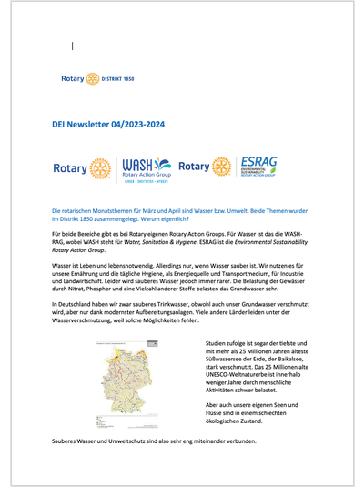 Die Monatsthemen für März und April sind Wasser beziehungsweise Umwelt. Beide Themen wurden im Distrikt 1850 zusammengelegt. Warum eigentlich?