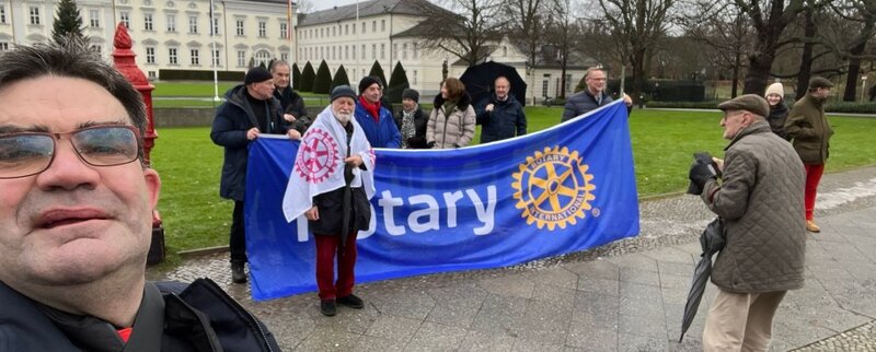 In Vertretung der deutschen Rotay-Mitglieder zeigten mehr als 50 rotarische Freundinnen und Freunde Gesicht nahmen an einer großen Demonstration in Berlin teil. Schirmherrin der Kundgebung war Bundestagspräsidentin Bärbel Bas. Mehrere tausend Menschen aus Politik und Verwaltung, Wirtschaft, Kunst und Kultur, Sport, Wissenschaft und der deutschen Zivilgesellschaft marschierten vom Treffpunkt an der Siegessäule im strömenden Regen zur Abschlusskundgebung am Brandenburger Tor.