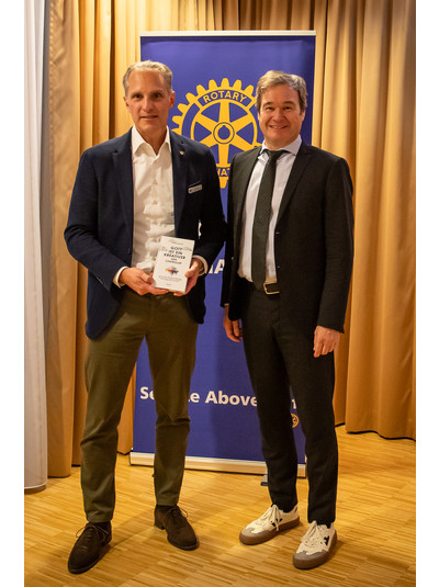 Der Rotary Club Künzelsau-Öhringen veranstaltet regelmäßig Events im Rahmen der Vortragsreihe „Inspired by Rotary“. Hierzu sind neben den eigenen Mitgliedern auch externe Gäste eingeladen. Ziel des Events ist, neben dem Genuss hochkarätiger Vorträge, immer auch die Förderung eines wohltätigen Projekts. Ende November lud der Club ins Hotel-Restaurant Rose in Bitzfeld zu einem ganz besonderen Event: Frank Dopheide ist Markenexperte, Werbeunternehmer und Autor des Erfolgsroman aus dem Jahre 2021 „Gott ist ein Kreativer - kein Controller“. Der Gründer der Agentur human unlimited und ehemals Sprecher der Geschäftsführung der Handelsblatt Media Group, war zu Gast und begeisterte gut 90 Gäste mit einem inspirierenden Impulsvortrag zum Thema „Purpose“. Gefördert wurde an diesem Abend der Verband „Special Olympics Deutschland“.