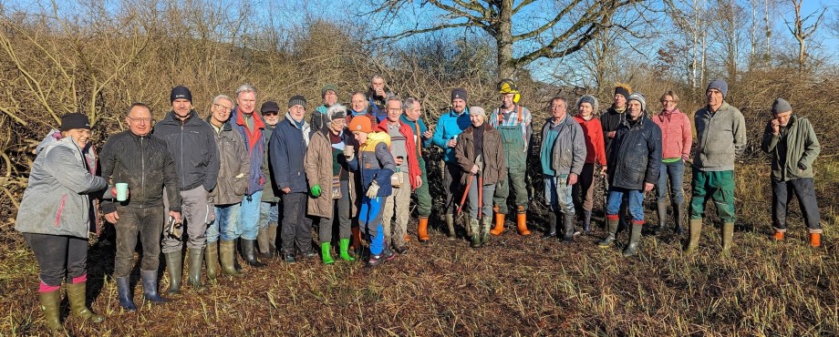 Einer unberührten Idylle glich das mit Rauhreif überzogene Hepbacher-Leimbacher-Ried, der große ehemalige Niedermoorkomplex zwischen Markdorf und Friedrichshafen, als die Naturschützer zur gemeinsamen Entholzungsaktion am Samstag vor dem 3. Advent dort eintrafen. Über 20 tatkräftige Mitglieder der BUND-Ortsgruppe Markdorf und des Rotary Clubs Markdorf hatten sich wieder – traditionell seit über zehn Jahren – dort zur gemeinsamen Schutz-Aktion verabredet.