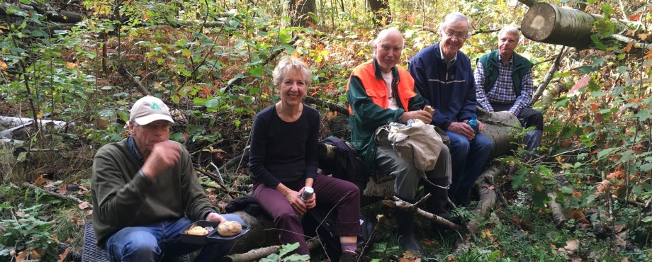 Am Ende hatten die Gäste 280 Bäume errudert und es waren Spenden und Einnahmen aus dem Kuchenverkauf in Höhe von knapp 700 Euro zusammengekommen. Im Herbst standen die Mitglieder des RC Kloster Zinna und ein Rotarier aus Brandenburg/Havel am Forsthaus in Frohnsdorf bereit für die Arbeit. Ausgestattet mit Grabegabeln und Kartoffelhacken, in Arbeitskleidung und mit Rucksäcken mit Verpflegung warteten sie auf Förster Henke und seine Anweisungen.