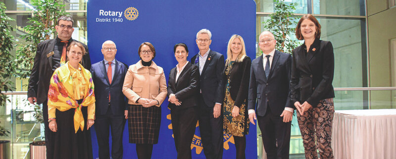 Begrüßt wurden die Gäste von Katja Hessel, Jörg Haas, Anne von Fallois (Polio Advocacy Adviser für Rotary International) und Past-RI-Präsident Holger Knaack. Hessel erinnerte an die wechselvolle Geschichte des Reichtagsgebäudes und hob hervor, dass in diesen schwierigen Zeiten Rotary mit seiner Weltoffenheit und den rotarischen Werten ein besonders wichtiger Teil der Gesellschaft ist. Governor Jörg Haas unterstrich die Wichtigkeit der Teilnahme der Rotarier an der Initiative „Nie wieder ist jetzt!“ und der Kundgebung gegen Antisemitismus, Rassismus und Fremdenfeindlichkeit. Damit setze sich Rotary gemäß seiner Werte für eine offene Gesellschaft ein. Aber auch Rotary unterliege einem gesellschaftlichen Wandel. Anne von Fallois dankte den Parlamentariern dafür, dass sie sich in Zeiten knapper Kassen dafür eingesetzt haben, dass die Bundesregierung auch im neuen Haushaltsjahr wieder die Rotary Kampagne „End Polio“ finanziell unterstützt. Das zeige die Stärke des gemeinsamen überparteilichen rotarischen Engagements. Holger Knaack erinnerte noch einmal daran, wie wichtig gemeinsames Engagement der Rotary Clubs für die Umsetzung der vielen Projekte rund um den Globus ist.