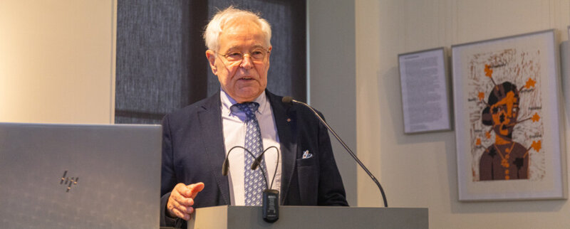 Im Anschluss begrüßte Kurt-Jürgen Maass den aus Bonn angereisten Referenten Prof. Schäfer und blickte auf die gemeinsame Arbeit in der Forschungsgruppe zurück. Schäfer (RC Bonn Süd-Bad Godesberg), renommierter Wirtschafts- und Sozialhistoriker, war Gründungspräsident der Stiftung Haus der Geschichte der Bundesrepublik Deutschland in Bonn und diente unter Kanzlerin Angela Merkel als Ministerialdirektor im Kanzleramt.