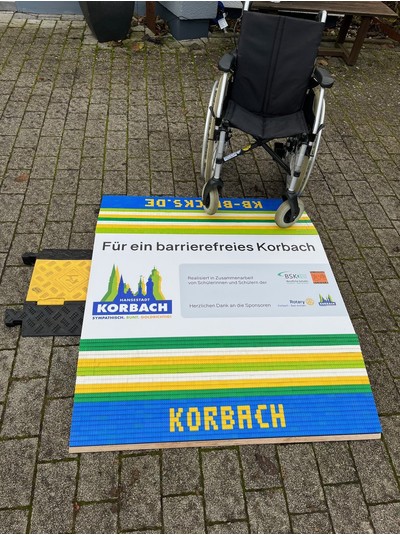 Der Rotary Club hat die Kosten für Kleber und Baumaterial übernommen. Von April 2024 an wird man die Legorampe im Rotary-Design als wichtigen Eyecatcher für das Thema Inklusion/Barrierefreiheit regelmäßig in der Stadt Korbach sehen."