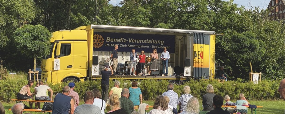 Über 400 Gäste nutzten das schöne Wetter beim traditionellen Jazzkonzert des Rotary Clubs Kühlungsborn-Bad Doberan für ein Picknick auf der Wiese des Gemeindehauses des Doberaner Münsters. Auf der Lkw-Bühne spielte die Bonner „Doktor Jazz Ambulanz“ Musik aus den 20er und 30er Jahren. Der Erlös von 3500 Euro kommt dem örtlichen Treffpunkt Suppenküche zugute.