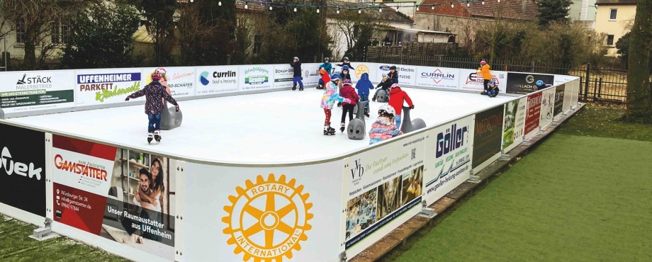 Im Einsatz für ein originelles Projekt, über das sich vor allem der Uffenheimer Nachwuchs freut: Noch bis Ende März können hier Klein, aber auch Groß ausprobieren, wie sich auf synthetischem Kunsteis Schlittschuh laufen lässt.