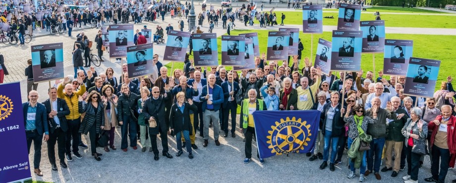 Über 100 Rotarierinnen und Rotarier aus diversen Clubs des Distrikts 1842 unterstützten das Projekt „Die Rückkehr der Namen“ unter der Schirmherrschaft der Präsidentin des Bayerischen Landtags, Ilse Aigner (RC Rosenheim). Die Aktion des Bayerischen Rundfunks erinnerte an 1000 Münchnerinnen und Münchner, die vom NS-Regime verfolgt, entmenschlicht und ermordet wurden. Für 18 von ihnen hatten Rotary-Mitglieder eine Patenschaft übernommen: Auf einem Weg vom Königsplatz bis zum Odeonsplatz trugen sie Tafeln mit Namen und Porträts der Verfolgten und berichteten von deren Schicksal. Zur Abschlussveranstaltung kamen circa 5000 Teilnehmer.