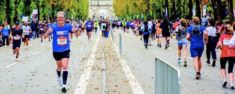 Einmal pro Jahr treffen sich die Mitglieder der Rotary Fellowship For Runners (RFFR) bei einem internationalen Laufevent. Für 2024 war die Wahl auf den München-Marathon gefallen. 37 Läuferinnen und Läufer, mit ihren Begleitungen über 60 Personen, nahmen teil. Besonders erfolgreich war Gerrit Wegener (RC Berlin-Gedächtniskirche): Er erreichte in der Gesamtwertung Platz 45 bei den Männern. Erfolg hatte auch Marathon-Organisator Daniele Schiuma (RC München-International) – er schaffte es mit einem ähnlichen Foto wie diesem in die Süddeutsche Zeitung. Die Rotary-Mitglieder generierten mit ihrem Einsatz mehrere Tausend Euro für „Frame Runners“, also Radrahmen, die es Bewegungsbeeinträchtigten ermöglichen, an Laufdisziplinen der Leichtathletik teilzunehmen. Im Oktober 2025 trifft sich die RFFR beim Marathon in Palma de Mallorca.