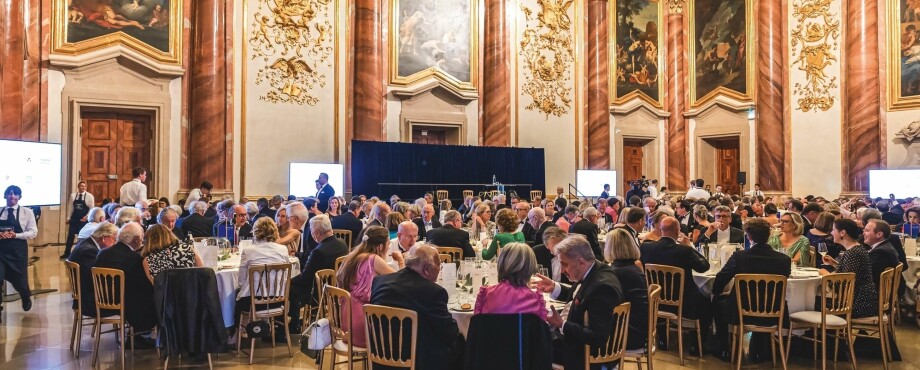 Mit großem Selbstvertrauen und 300 geladenen Gästen hat der RC Wien seine große Jubiläumsgala anlässlich seines 100-jährigen Bestehens im Palais Liechtenstein gefeiert. Bei Kaiserwetter traf sich die Festgesellschaft in der wunderschönen Parkanlage zum Get-together, ehe der eigentliche Festakt mit Galadinner im prunkvollen Herkulessaal stattfand. Clubpräsident Andreas Blaschke rief zur Zuversicht in turbulenten Zeiten auf: „Wer, wenn nicht wir, muss Zuversicht ausstrahlen und in die Gesellschaft hineinwirken? Rotary als Basis einer weltoffenen Gesellschaft, offen und fair im Diskurs, Rotary als Thinktank – das wäre mein Wunsch.“