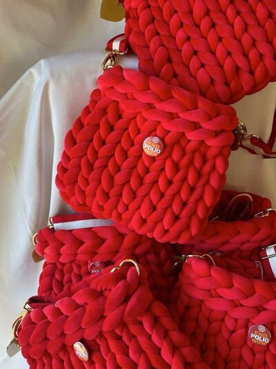 Wer eine bestellen möchte oder auch eine Handtaschenaktion machen möchte: Jede Tasche kostet 169 Euro und der Erlös (Verkaufspreis minus Herstellkosten) geht an End Polio Now.
