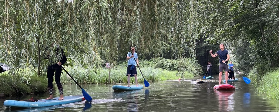 Bereits das dritte Mal trafen sich im August die Freunde des Rotary Clubs Cottbus zum Stand-Up-Paddeln im Spreewald.