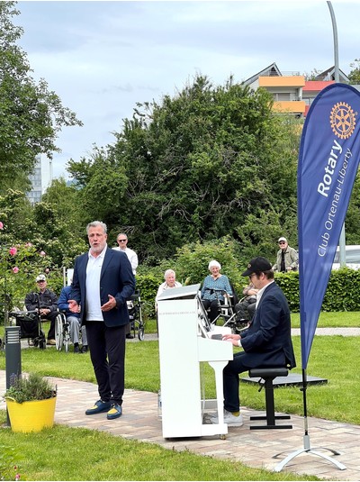 Der Rotary Club Ortenau-Liberty zieht ein positives Fazit des diesjährigen Rotary Action Day. "Höhepunkte des Tages waren die strahlenden Gesichter der Kinder am Eisstand beim Bürgerfest am Mühlbach sowie die berührenden Momente in den Pflegeheimen von Offenburg", informiert Club-Präsident Claudio Labianca. Entertainer Marc Marshall und sein Pianist René Kroemer, begeisterten mit einfühlsam gesungenen, wunderschönen Melodien die Bewohnerinnen und Bewohner Offenburger Pflegeheimen. "Es gab Standing Ovations und leuchtende Augen, auch bei den angrenzenden Anwohnern, die auf ihren Balkonen die Aufführung begeistert verfolgten. Diese besondere Veranstaltung wird noch lange in Erinnerung bleiben", so Labianca, der bei seinem Grußwort Rotary-Gründer Paul Harris zitierte: "Das, was wir im Leben zurücklassen, ist das, was wir geliebt haben."