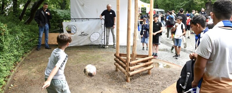 An den Aktionsständen konnte man Geschichten lesen, mit Hertha-BSCVertretern Torwand schießen üben, mit Mathekisten rechnen, gesunde Brotgesichter anfertigen, auf Malwänden künstlerisch tätig werden, eine Apfelschälmaschine bedienen, Gesichter schminken und an einer Quiz-Rallye teilnehmen.