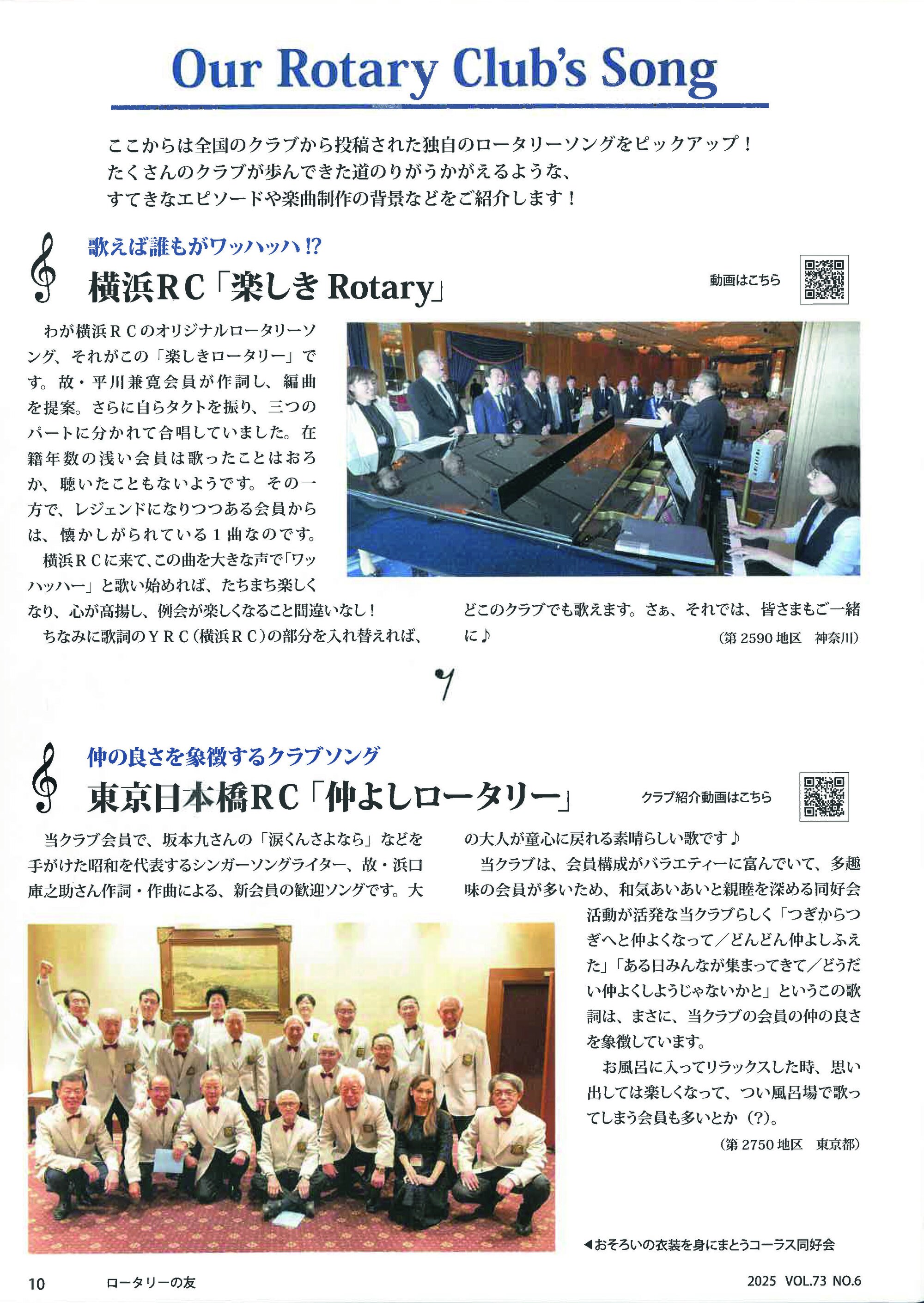 In vielen japanischen Rotary Clubs gehört es im wahrsten Sinne des Wortes zum guten Ton, gemeinsam zu singen – insbesondere wenn Gäste anwesend sind. Unser japanisches Schwestermagazin Rotary No Tomo hat dem rotarischen Singen jüngst eine Geschichte gewidmet und Clubsongsvorgestellt.